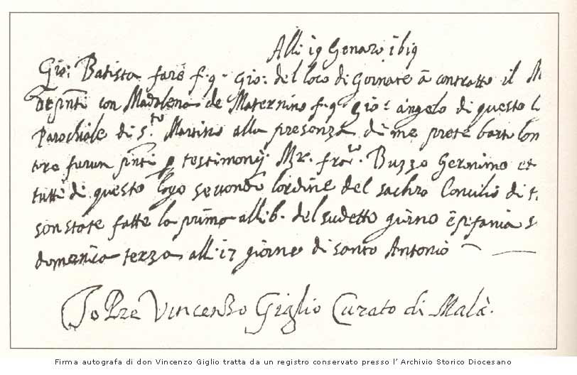 | - Firma autografa di don Vincenzo Giglio | |||||||||||||||||||||||||