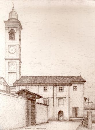 La vecchia Chiesa San Lorenzo di Gurone vista da via Ravina - collezione R. Centanin