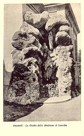 La grotta della Madonna di Lourdes posta sul lato della Chiesa di San Martino all'ingresso dell'oratorio maschile (1940) - collezione A. Buzzi