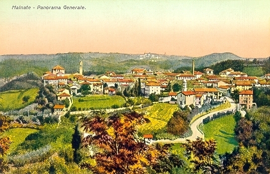Veduta da villa Toselli; riconoscibili la “curva di vagunei”, la Chiesa di San Matteo, e, a sinistra, la Chiesa San Martino con il campanile (1910?) - collezione A. Buzzi