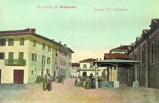 L'allora piazza XX Settembre con, sulla destra, la ditta Braghenti e, in primo piano il lavatoio pubblico detto “a Vasena” (fine '800) - collezione R. Avanzi
