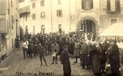 La piazza verso via Dante durante il mercato (anni '20?) - collezione A. Buzzi