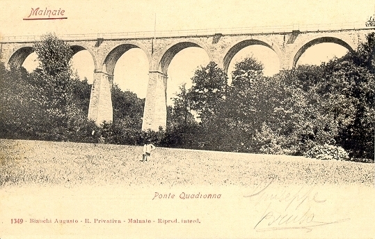 Il ponte della Quadronna, a tre binari: per Varese, per Milano, per Como (primi del '900) - collezione A. Ambrosetti