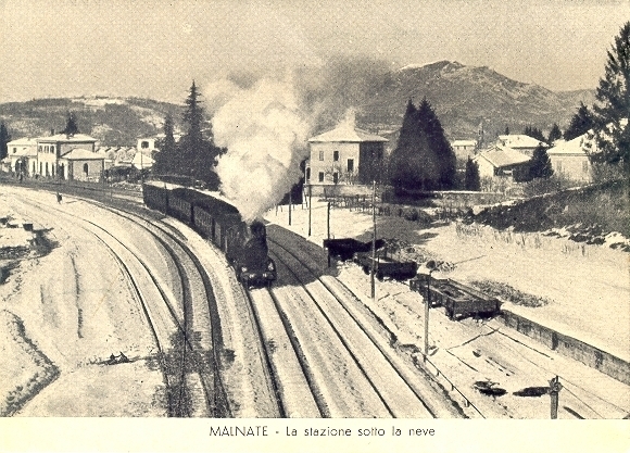 Veduta della Stazione e delle lineee ferroviarie per Milano e Como dal cavalcavia dell'attuale via General Cantore (1930) - collezione A. Ambrosetti