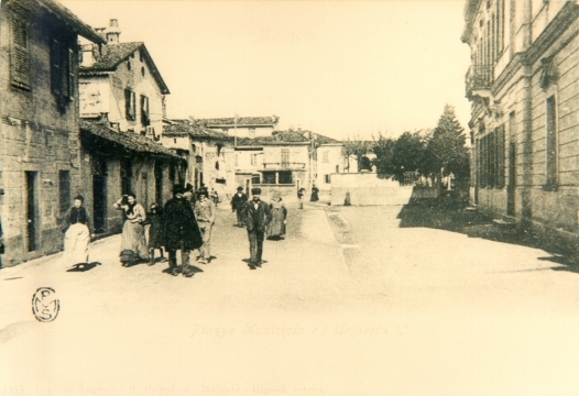 La sede del vecchio Municipio con l'edificio dirimpetto ancora a un piano (primi del '900) - archivio Ossola