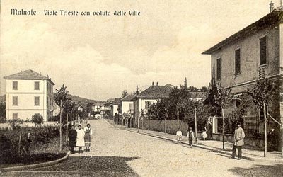 Vista del viale, appena sistemato e alberato, dall'incrocio con via Matteotti e il piazzale della Stazione delle Ferrovie Nord (anni '20) - collezione A. Ambrosetti