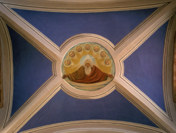 La chiesa, a pianta rettangolare, è costituita da un'unica navata senza transetto, separata dall'abside mediante un arco trionfale, sostenuto da piedritti, trabeazione e lesene; il presbiterio è rialzato di tre gradini in marmo rispetto all'aula. Sull'arco è ben visibile il simbolo della famiglia Borromeo: una corona con la scritta "Humilitas". Il soffitto è costituito da una volta a botte continua, dove sono dipinte quattro finte finestre, due per ogni lato dell'aula, recuperate durante il restauro degli anni '60 semplicemente scrostando il muro. Non esiste pulpito e l'ambone è costituito da un semplice leggio posto sulla balaustra di destra che separa, insieme a quella posta sul lato sinistro, l'aula dal presbiterio.