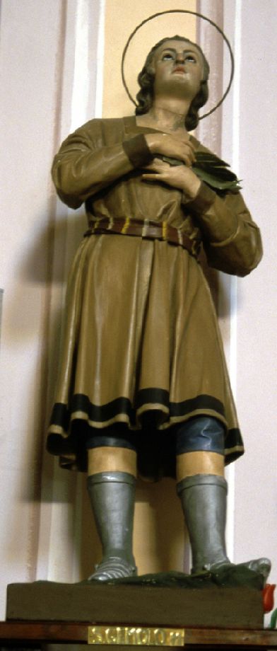 Piccoli quadri in smalto su rame che rappresentano i vari momenti della Via Crucis, dipinti da Francesco Borghi, sono collocati lungo i muri perimetrali All'estremità delle due pareti settentrionale e meridionale, lateralmente al presbiterio, si trovano due statue: a sinistra quella di san Gemolo (foto), in cartapesta, che potrebbe risalire al Seicento, a destra la statua novecentesca in gesso raffigurante san Carlo. Un'altra scultura più piccola, dedicata sempre a san Carlo, collocata subito dopo il portale a destra, ha un discreto pregio artistico, trattandosi di un'opera del Cinquecento di stile popolare. Per molti anni la statua è stata esposta alle intemperie in una nicchia dell'edificio ad angolo tra via Monte Grappa e via Hermada, dove ora è posta una copia. È stata necessaria un'attenta opera di restauro per cancellare sulla statua cinquecentesca i segni lasciati dalla noncuranza degli uomini e dall'aggressività degli agenti atmosferici: dopo essere stata risanata e consolidata, stuccata e laccata, è stata ridipinta com'era in origine, sulla base dei colori ancora visibili nella parte posteriore, anche se l'etica del restauro richiede di lasciare intatto quello che non si può ricostruire con certezza.
