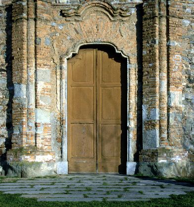 L'entrata principale, però, non era un tempo posizionata a ovest, bensì a nord, verso la strada che conduceva al centro abitato; un'apertura secondaria era sul lato sud verso la valle. Così, senza soffitto e sagrestia, con una piccola campana appesa tra due pilastri molto rozzi sul tetto, rimase fino alla fine del Cinquecento.