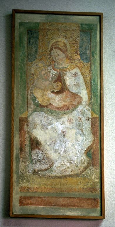 Dalla strada si accedeva al piccolo piazzale in rizzada salendo tre gradini, oltre i quali, a sinistra, sul muro più antico della facciata, si aprivano due porte: una immeteva in un locale non comunicante con l'edificio sacro e l'altra nell'oratorio. Di fronte ai tre gradini, sulla parete nord della parte di allungamento, vi era la piccola porta utilizzata abitualmente per entrare nell'edificio. Solo nelle grandi occasioni (processioni, feste patronali,...) era aperto il portale principale posto a ovest. All'estremità destra della parte antica della facciata vi era, poco distante dal suolo, uno splendido affresco, protetto parzialmente da una rete metaliica, che raffigurava la Madonna del Latte (fine 1400-inizi 1500), poi strappato e trasferito su tela in occasione della demolizione della chiesa. Questo affresco, di pregevole fattura, come gli altri della stessa epoca presenti nella chiesa, per la tecnica esecutiva e il tipo di disegno, può essere accostato ai dipinti dell'oratorio di santo Stefano di Bizzozero e a quello della cappella di san Rocco, è probabile che siano opera della mano dello stesso pittore o di artisti della stessa scuola.
