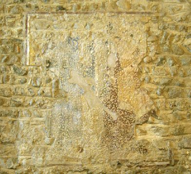 La parete nord della chiesa esternamente evidenzia pietre angolari ed intonaco originale; nella parte interna le opere di allungamento non hanno distrutto nulla, poiché il muro aggiunto non è stato addossato completamente a quello già esistente, per la presenza del campanile, pertanto non sono stati distrutti gli affreschi (probabilmente dedicati a san Rocco) dell'antica parete ed è possibile vederli, affacciandosi dalla piccola porta che dalla chiesa si apre verso il campanile. Al centro della parete interna nord è venuta alla luce una superficie ad affresco con segni di piccozzatura, che lasciano comunque intravedere tracce di un antico dipinto dedicato a santa Caterina così datato “… opus fecit…(manca il nome dell'autore) 1406”. Ai lati dell'affresco la parete non ha più tracce di dipinti e sono visibili parti con pietre sigillate; questo induce ad affermare che la parete preesisteva ai lavori di ricostruzione del Cinquecento e si presentava a vista. Osservando l'affresco di santa Caterina, sul lato sinistro, si nota un'impronta nera molto simile a quella del palmo di una mano.