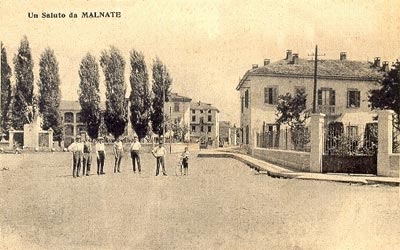 La Piazza vista provenendo da Varese; a sinistra il Monumento ai Caduti; l'edificio sulla destra ospitava l'ufficio Postale (1926) - collezione A. Buzzi