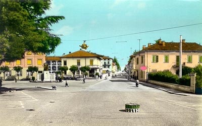 Veduta generale sulla strada statale Briantea in direzione Como; sulla sinistra la Pesa Pubblica (fine anni '50) - collezione A. Buzzi
